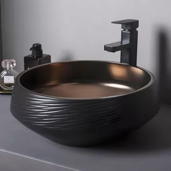 Deluxe Black and Bronze Ceramic Bathroom Sink Set