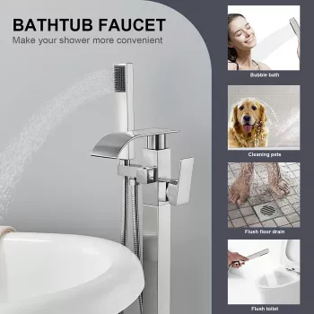 Luxury Square Floor Standing Bathtub Faucet with Waterfall Mixer